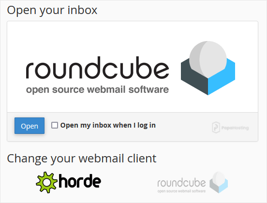 2. Desde la página de correo web de cPanel, haga clic en cualquier lector de correo electrónico de correo web, como "Round Cube", o cualquier otra aplicación disponible.