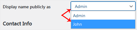 4. Desde el Mostrar nombre públicamente como, elija su apodo recién agregado en el menú desplegable.
